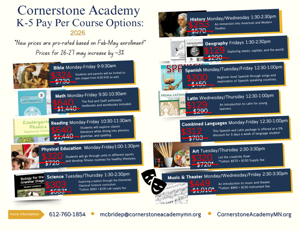 We are so pleased to be offering Pay Per Course Classes at our school!